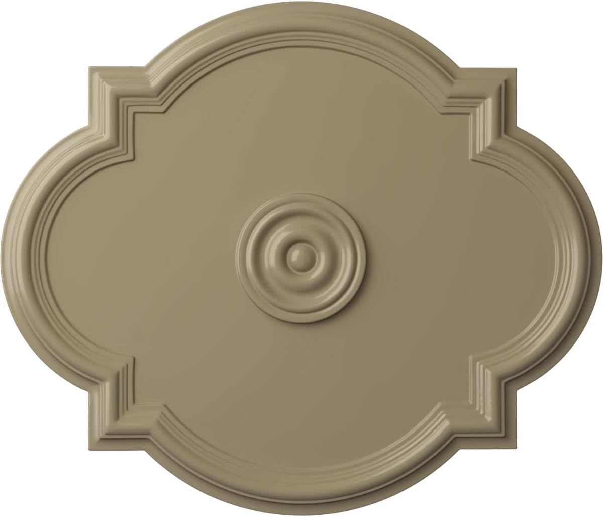 Our ceiling medallion collections are modeled after original historical patterns and designs. Our artisans then hand carve an original piece. Being hand carved each piece is richly detailed with deep relief, sharp lines, and a truly unique touch. That master piece is then used to create a mold master. Once the mold master is created we use our high density urethane foam to form each medallion. The finished look is a beautifully detailed, light weight, solid construction, focal piece. The resemblance to original plaster medallions is achieved only by using our high density urethane and not vacuum formed, "plastic" type medallions. Medallions can be cut using standard woodworking tools to add a hole for electrical or a ceiling fan canopy. Medallions are light weight for easy installation. They are fully primed and ready for your paint. If you have any questions feel free to ask. These are in stock and available for immediate shipment.