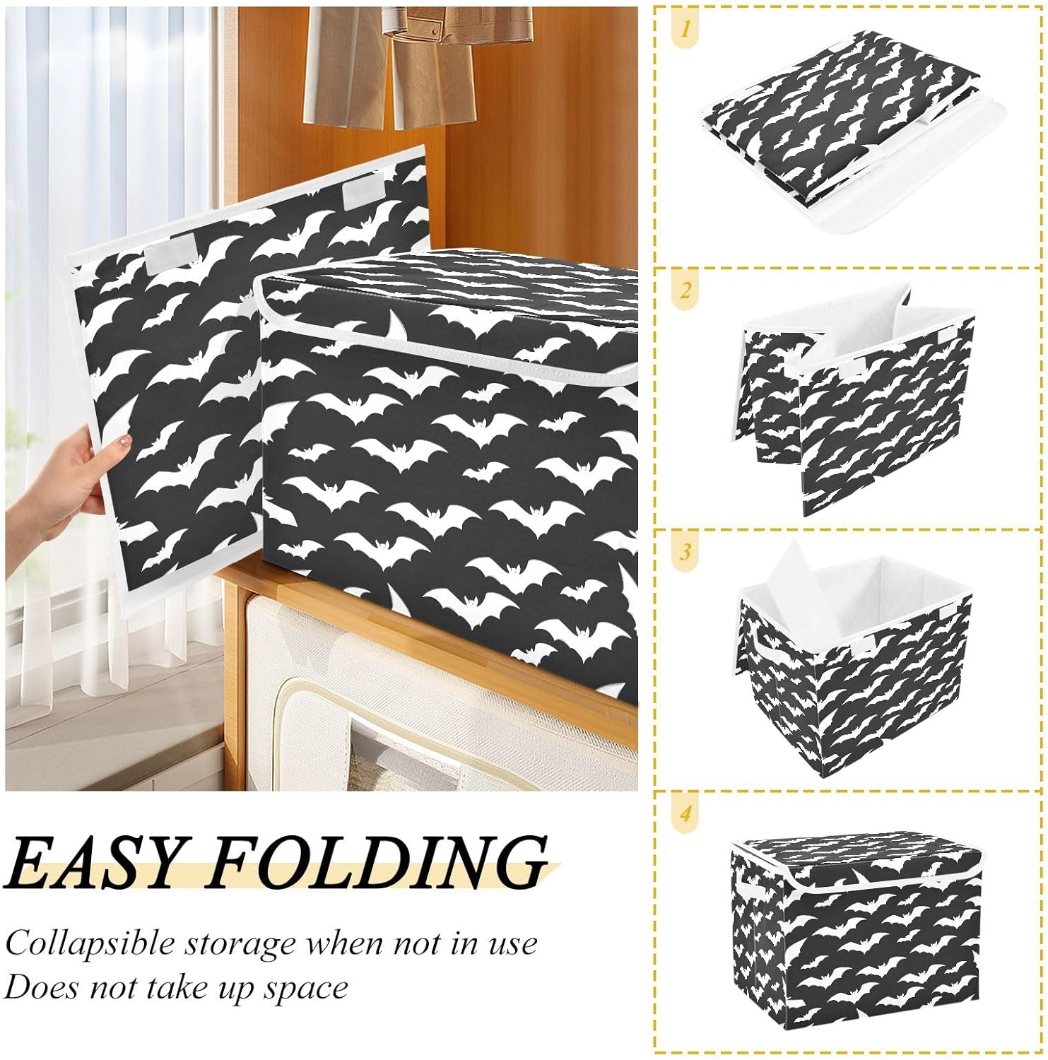 This storage bins with lids is useful for your daily life. Not only suitable for adult, but also suitable for home kitchen and office. Why choose our large foldable organizer box? - Large capacity, can store more stuff. - Sturdy side handles for easy toting. - Collapsible design for convenient storage. - Modern stylish,cute pattern design. - Storage basket with cover design to prevent dust from dust. - Multi-purpose, suitable for any place. Features: - Perfect for kitchen, office, bedroom, living room, rest room, closets and cabinets. It's an excellent choice for keeping your space nice, tidy and organized. -If you have any questions or issues regarding the storage boxes, please do not hesitate to send the seller a message through Amazon we will respond within 24 hours. THIS ITEM IS NOT INTENDED FOR USE BY CHILDREN 12 AND UNDER.